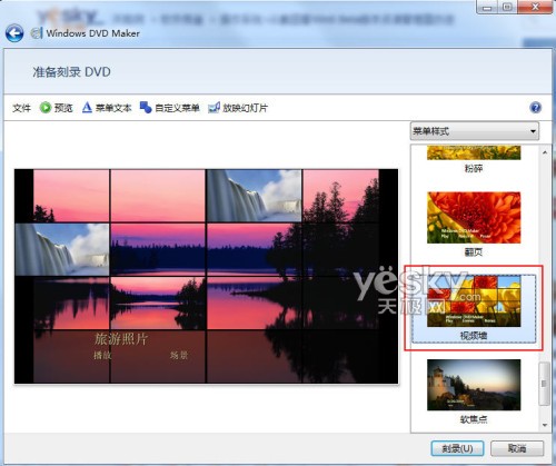 点击“预览”、“菜单文本”、“自定义菜单”、“放映幻灯片”等,可以方便地预览视频效果、设置菜单文本的字体内容、自定义菜单样式等等。