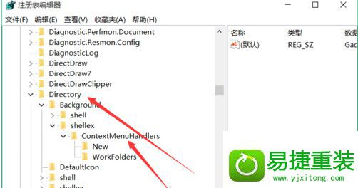 3.在打开的注册表编辑器窗口中,咱们依次HKEY_CLAssEs_RooT-HKEY_CLAssEs_RooTdirectory,然后找到其下属的HKEY_CLAssEs_RooTdirectoryBackgroundshellexContextMenuHandlers并双击打开。