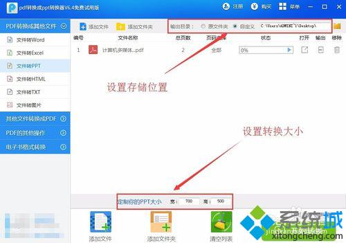 4、文件添加完成后,设置转换文件保存位置及转换ppt文件的宽和高,并设置转换结果的保存位置,可以将转换出来的文件保存在原文件夹内,也可以自定义文件夹存储路径;