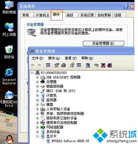 二、在跳出的“计算机的属性”窗口中,打开“硬件”选项卡,选中自己的u盘驱动后打开“属性”选项;