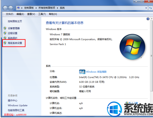 2.点击“属性”后,打开系统页面,默认显示当前系统的设置,操作系统等信息,选择左边列表中的“高级系统配置”菜单项