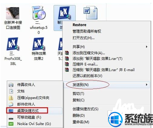 11.最后双击打开“聊天唱歌效果1.kx”,“聊天唱歌效果1.kx”在将快捷方式发送到桌面,“特殊效果效果2.kx”将快捷方式发送到桌面
