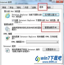 2、点击切换到“程序”选项卡,打开“管理加载项”;